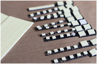 На обратную сторону клавиш приклеила объемные клеевые подушечки. На светлые клавиши в один слой, на черные в два слоя.